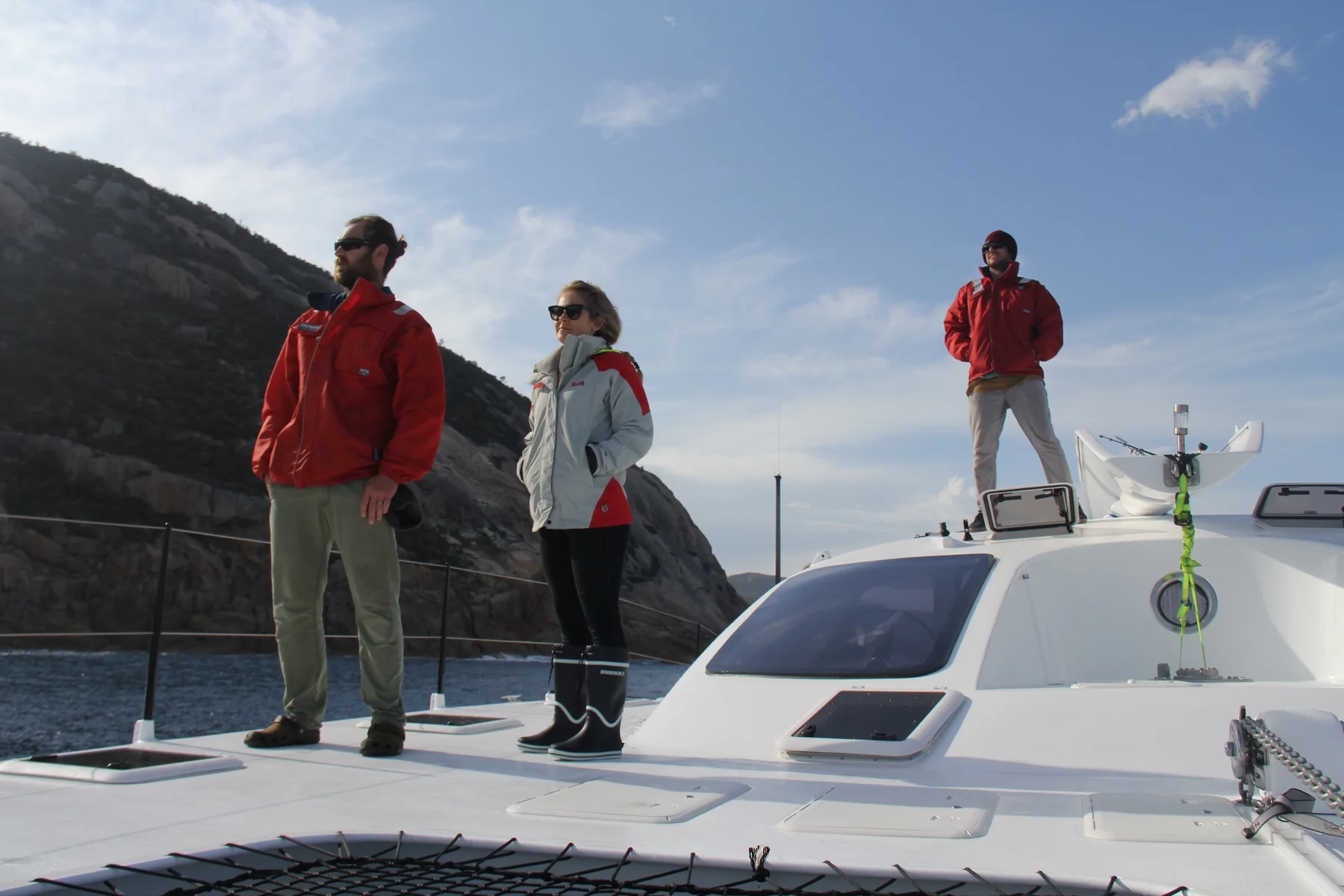 Perfect conditions for our route to Victoria. The crew awake in the dark, with an easterly wind. Roam cruises along nicely, making good time.