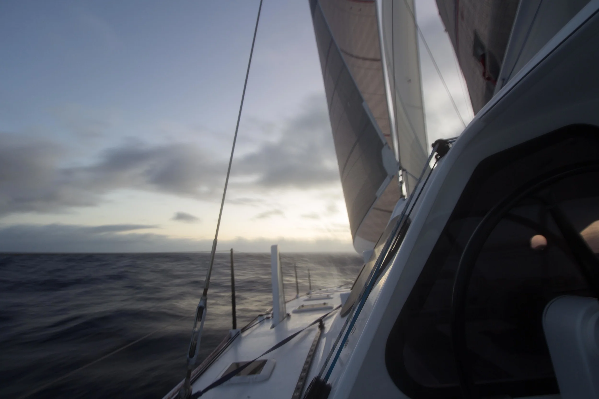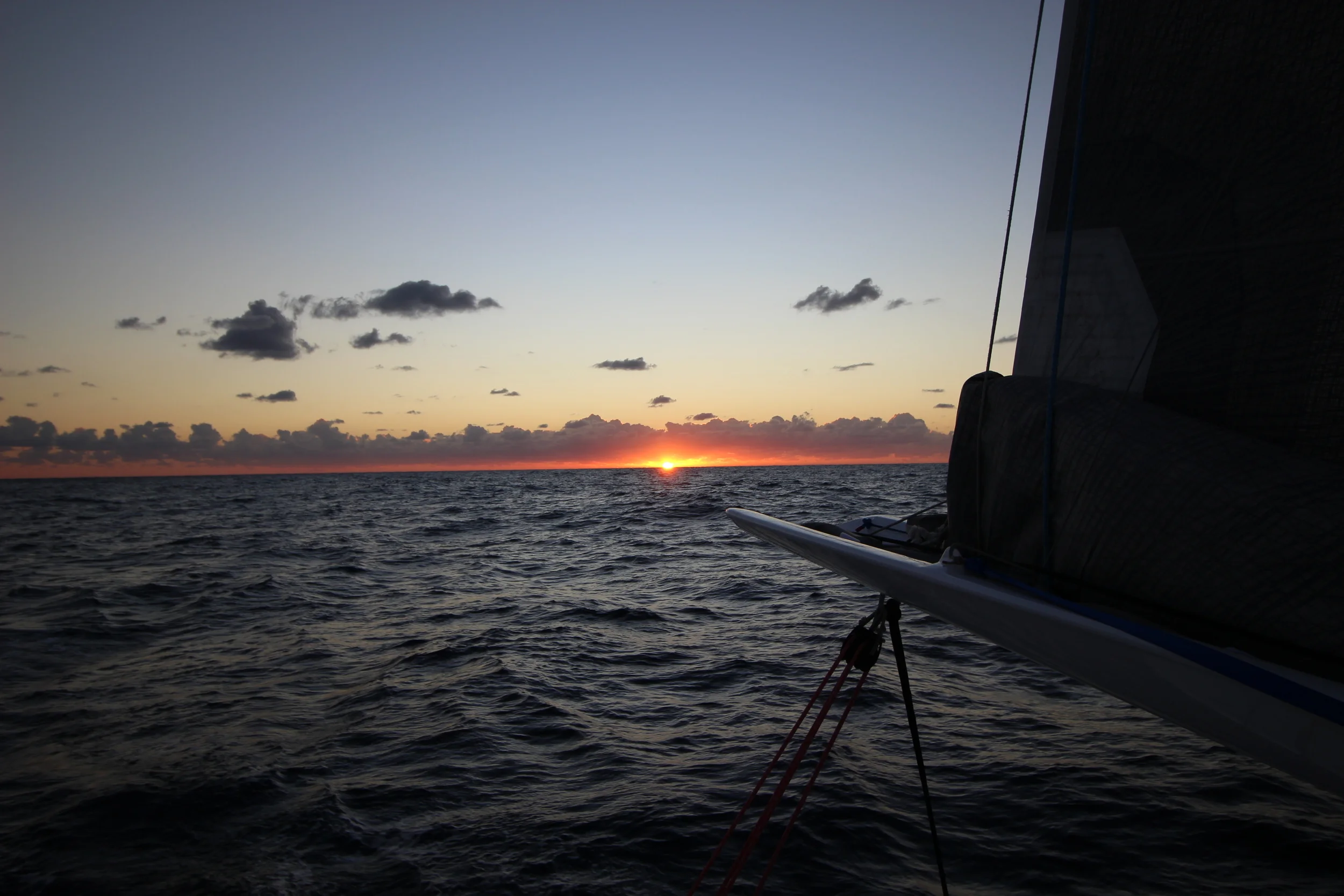 I was on watch with Iain last night and this morning we had some interesting wind shifts. At one point the wind dropped out completely, going from AWA of about 50 degrees 10-12 knots to 2 knots of breeze and a wind shift around to 150 degrees. All in all we had a good couple watches with beautiful clear nights with lots of star gazing, phosphorescence, a near perfect morning breeze for sailing and sunset. It is also good sailing with an experienced sailor like Iain who helped broaden my understanding and knowledge. The rest of the day we had good sailing conditions with reasonably comfortable swell and 15-20 knots of SE wind. Over night it only got better with breeze picking up to 20 knots SE and an apparent wind angle between 65- 95 we were slicing through the inky ocean and Roam was surfing along comfortably at around 12 knots with a triple surf getting us up to 20 knot boat speed in 22 knots of breeze.