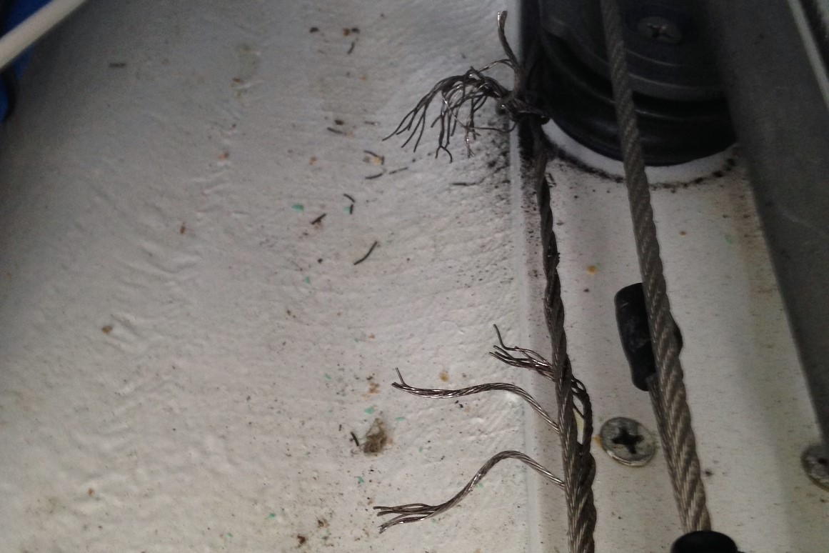Failed "pull-pull" stainless steel cable as noticed in Noumea, New Caledonia after 6,000 Nm in service