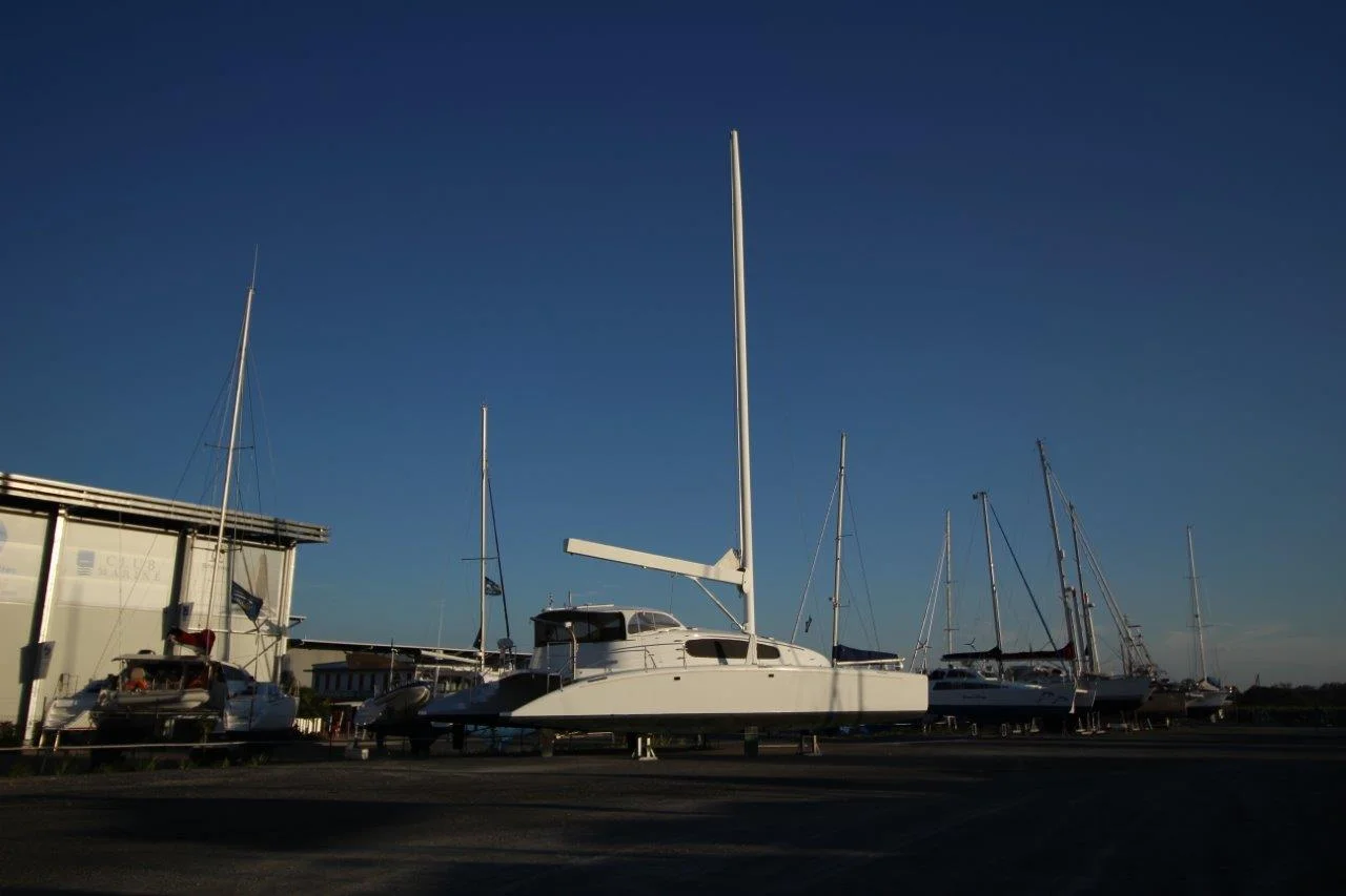 This is the only long therm world cruiser with an open bridge deck I saw this year. I briefly met the American bloke that owned it. A Kurt Hughes design I believe. On the right day it must be a phonominal boat to passage make on!