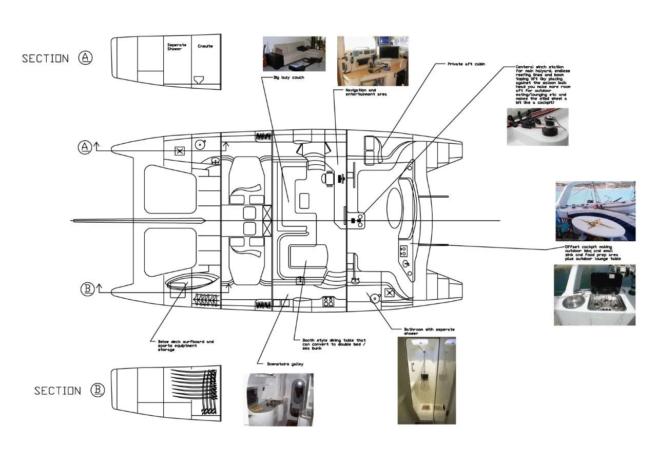 Think "Wind Energy", the sail plan and deck hardware have been carefully selected to allow efficient sailing in all weathers. From the strong winds of the Roaring 40's to ultra light conditions experienced around the equator ROAM will be able to travel under renewable wind power alone.