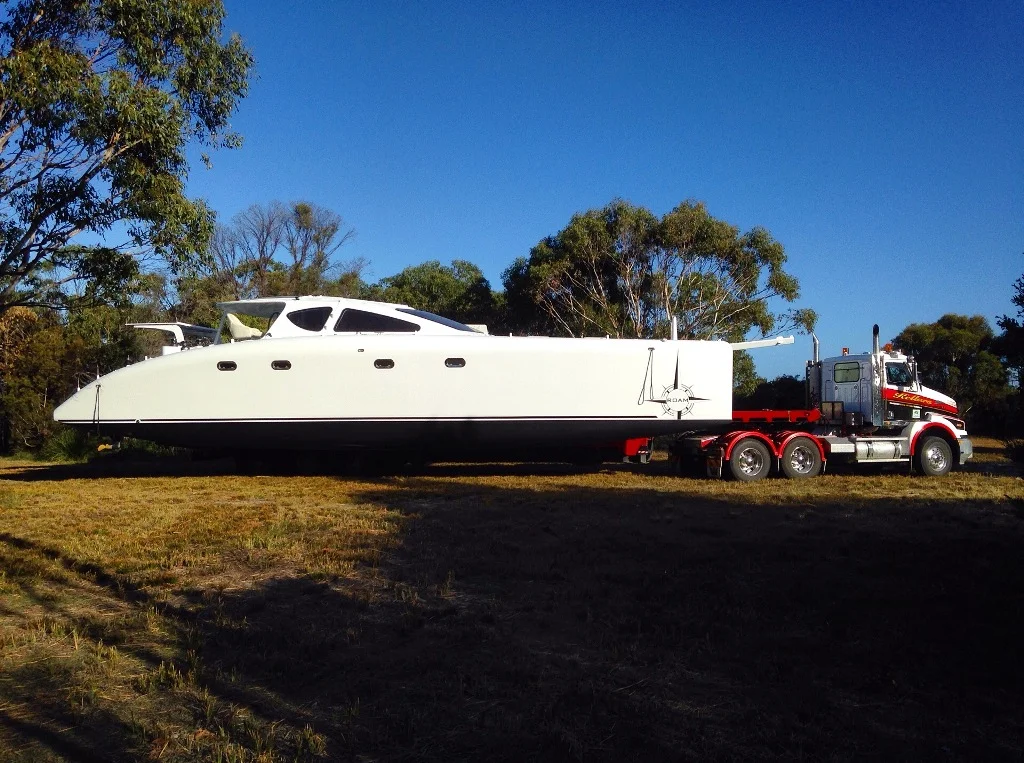 Rollout. ROAM is on the move for the first time loaded onto Kellara Transports trailer. April 2015.